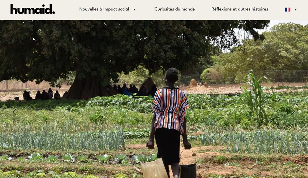 Le site utilise un design minimaliste. Sa page d’accueil comporte un diaporama dynamique de la documentation du projet et une palette de couleurs bien choisie. Pour faciliter la navigation, humaid.communication organise ses projets en fonction des continents.