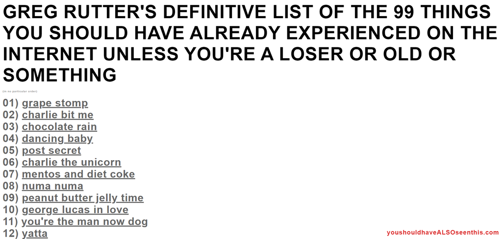 Visitez ce site web si vous souhaitez découvrir certaines bizarreries les plus connues de l’internet. Parcourez sa collection de memes, de vidéos drôles et d’événements aléatoires des années 2000, et voyez combien vous en reconnaissez ou vous en souvenez.