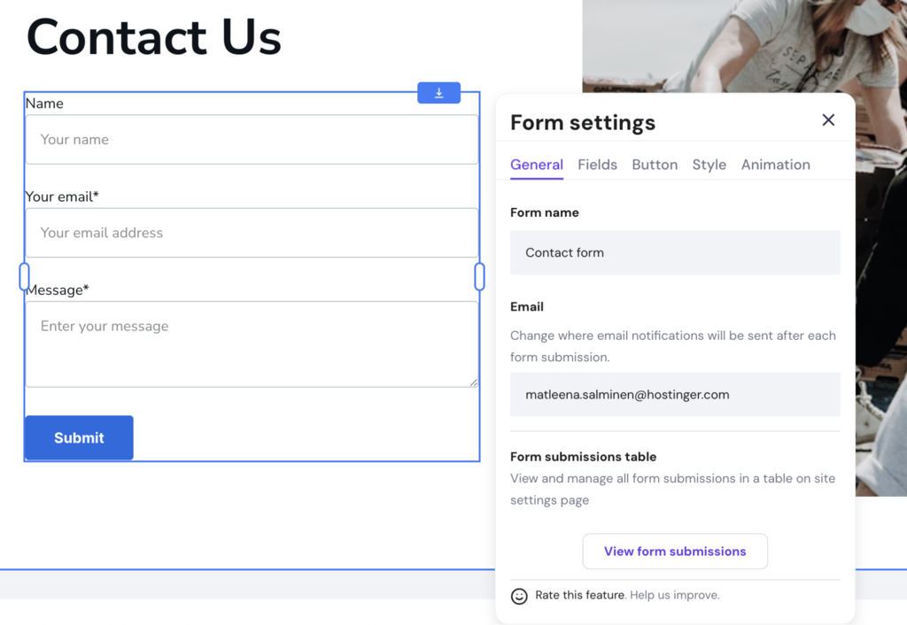 Setting up newsletter subscription forms and integrating email marketing tools into your website is fast and easy with Hostinger Website Builder.