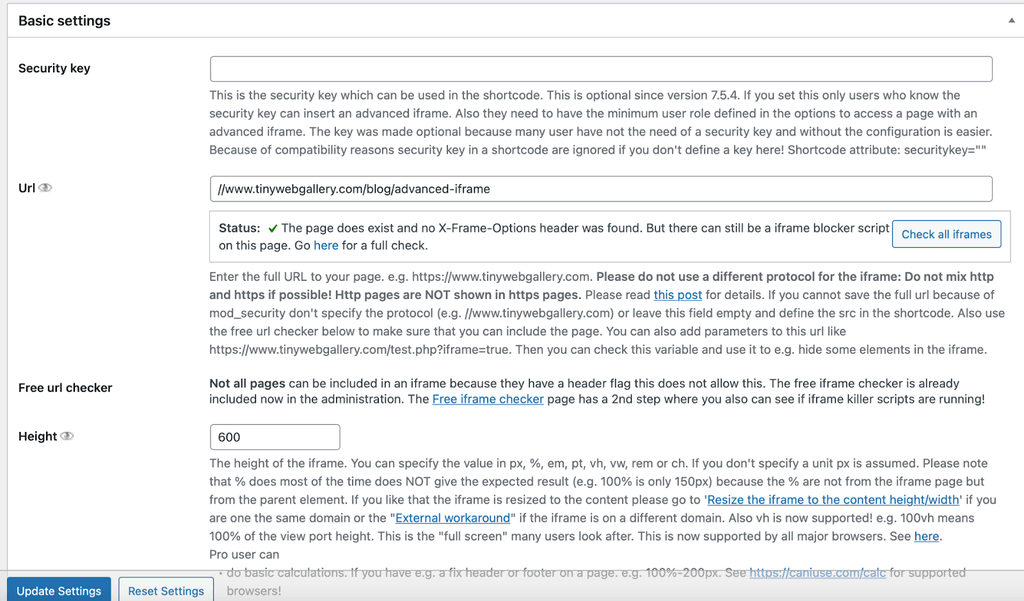 Before embedding the iFrame on your WordPress site, use the plugin’s free iFrame checker to see whether the URL contains any scripts that will prevent the content from loading.