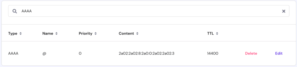 Unlike an A record, which maps the IPv4 of your hosting server to a domain, an AAAA record maps the IPv6 address.