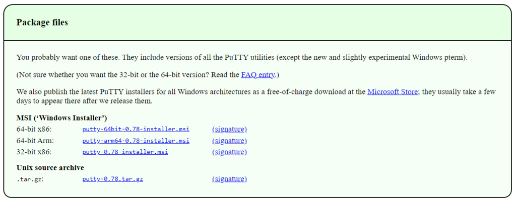 On the same Log in to SSH window, click the PuTTY button, and you will see links to download the package files.